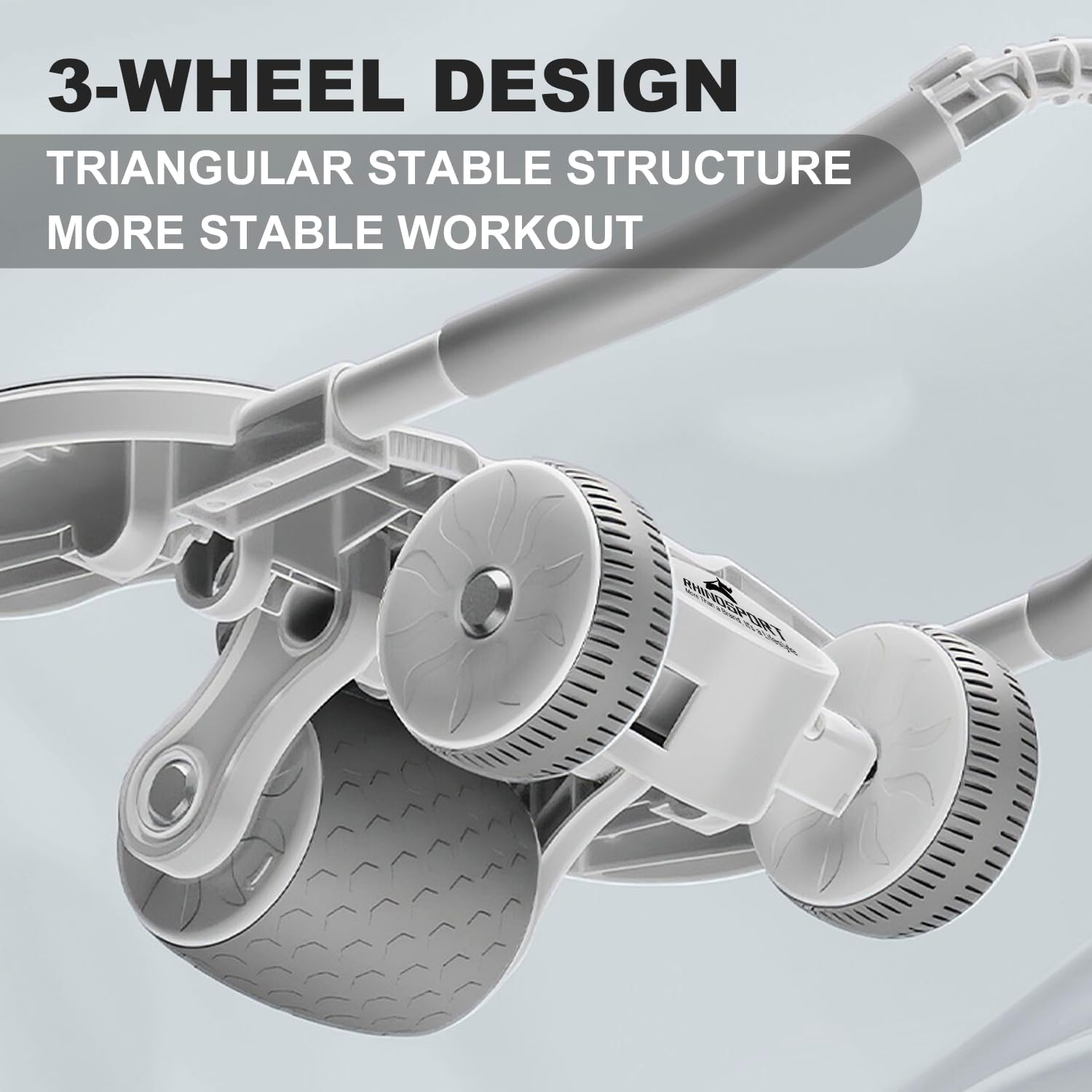 - Triple Wheel Stability with Wide Front Wheel: Our abdominal exercise equipment features a unique triple-wheel design with a triangular stable structure. The widened front wheel, measuring 112mm, ensures enhanced stability during workouts. This design provides smooth rolling and superior control, making it ideal for effective muscle and core training, especially beneficial for beginners seeking secure and steady exercise routines.