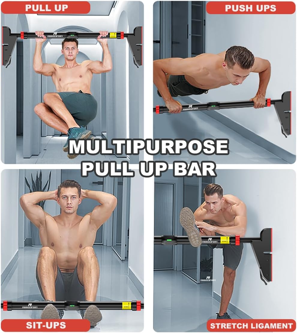 - 【Multipurpose Use And Stable】 This Rhinosport chin-up bar is perfect for chin-ups, chin-ups, sit-ups, dips, crunches, triceps dips, leg raises and more ... Make your exercises more scientific and healthier if you are not satisfied with this product , we will refund your money or replace the product with no problem. Please note that you need to measure the size of your own door frame before buying! If you have any questions, please contact us, and we will solve your problems within 24 hours.