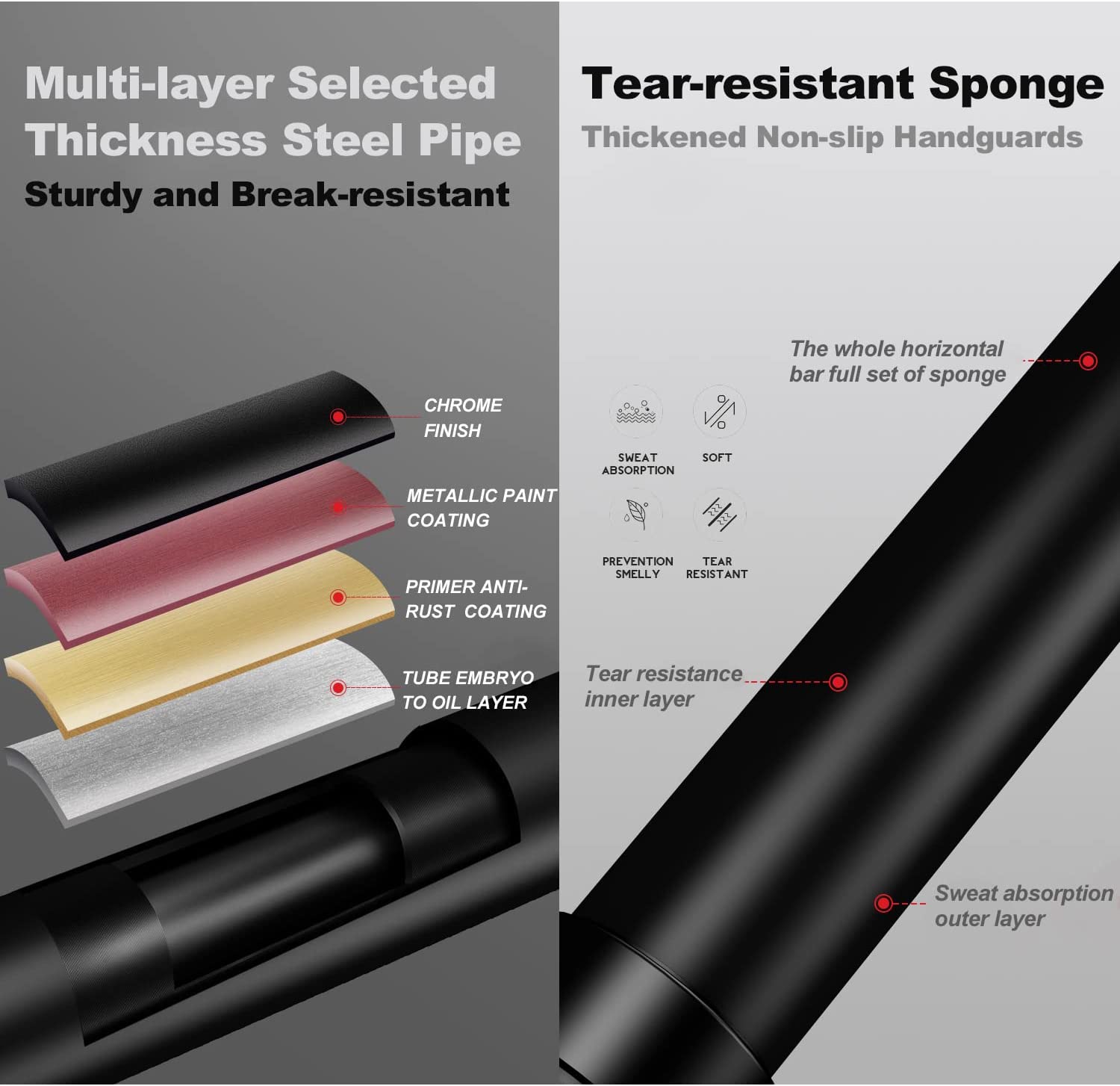 - 【Suitable for Narrow and Wide Grip Training】Full-covered Hand-Grips - The surface of the chin up bar is full covered with high quality EVA foam handle offers additional comfort and minimizes hand fatigue or pain. Effectively avoid calluses and minimize hand fatigue. Provide more choices for hand activity space according to your exercise aim.